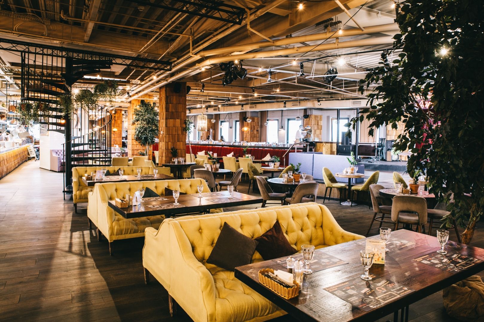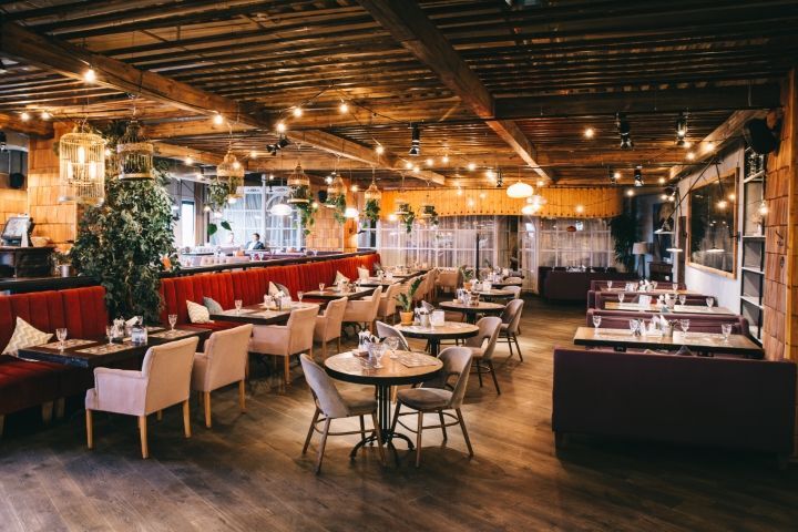 Планировка продумана с учётом разных сценариев посещения. Открытая кухня добавляет динамики и прозрачности процессу приготовления, просторная детская комната делает ресторан удобным для семей, а терраса становится точкой притяжения в тёплый сезон. Такое сочетание формирует многослойное пространство, подходящее как для неспешных обедов, так и для вечерних встреч.